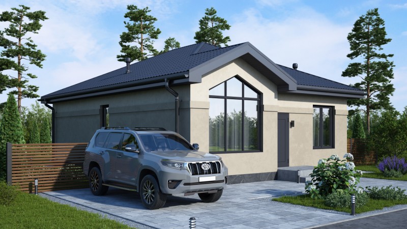 Компактный функциональный одноэтажный дом с оригинальным фасадом и интересной кровлей. Имеет три просторных спальни, кухню гостиную с выходом на задний двор, котельную-постирочную, второй санузел можно разместить в котельной.