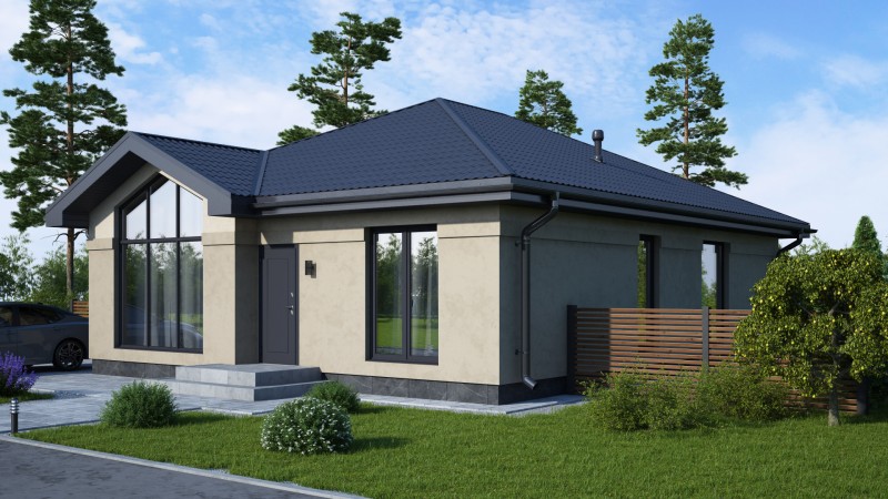 Функциональный одноэтажный дом с оригинальными комбинированными фасадами, интересной кровлей. Имеет три спальни, одна из них мастер спальня с гардеробной и санузлом, просторную кухню гостиную с выходом на задний двор, котельную‑постирочную, второй санузел.
